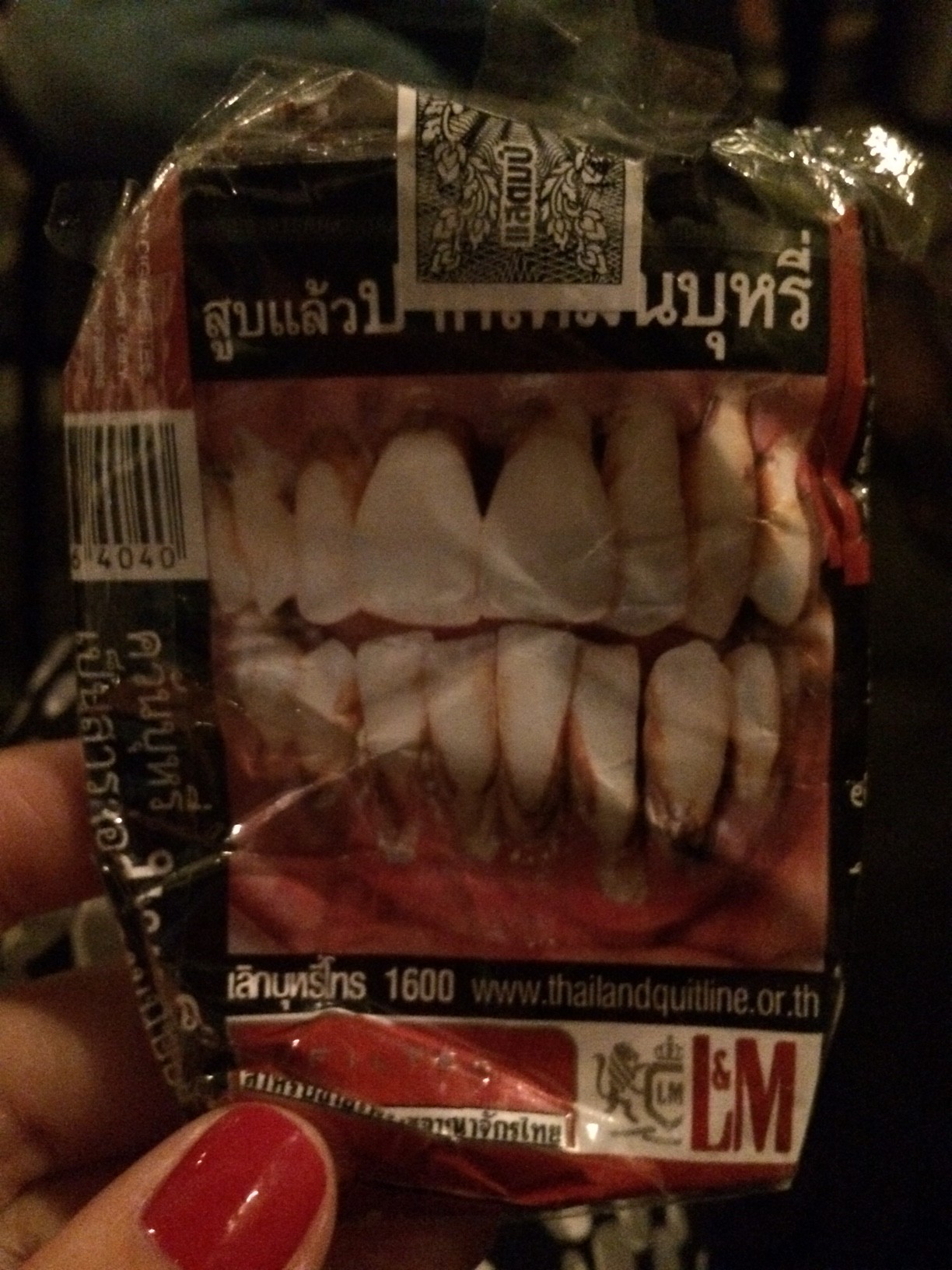 Aus der Ferne sehen dies Zigarettenverpackungen in Thailand ja ganz „interessant“ aus, wie Sammelbilder. Bei näherer Betrachtung sind diese einfach nur fies und ekelhaft. Ist das der Weg, in den sich die „Visitenkarte“ Zigaretten-Marke auch in Europa entwickelt?